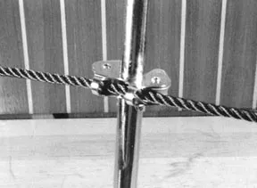 An important feature of the new design is that it can be mounted on a stanchion without removing either the lifeline or the stanchion. But it’s a very tight fit (it has to be, or it would slide up and down). When installing, the use of a bit of lubricant may minimize scratches on the stanchion. It mounts in a fixed position and its two bearing sheaves will not compensate for unfair leads.