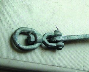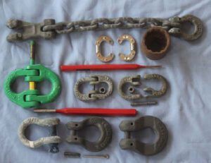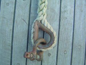 Shackles – You will need two rated shackles with the clevis pins passing through each end link. If you use properly rated shackles they will be stronger than the chain. We suggest Crosby’s galvanised G209A, which can also be used as primary anchor shackles. The shackle pin must be moused (or use Loctite, which will set underwater). This is a bit clunky but safe link.