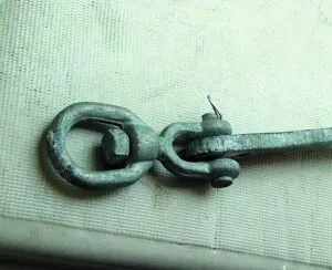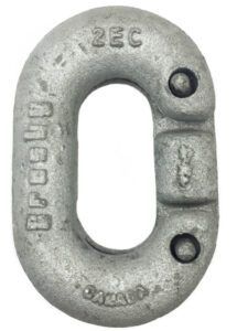 Quick link – This is an open oval of steel closed with a long threaded nut. It is very easy to use, but we don’t recommend it for high loads. It is not as strong as a double clevis and will not be as strong as most anchor chain.
