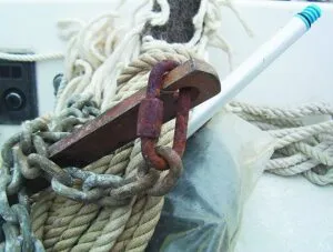 Your anchoring system is only as strong as its weakest component, which includes not only the rode, but also shackles, splices, mooring bitts, cleats—in short, any gear used to secure your boat while at anchor. Proper maintenance includes inspection of these as well as laying the rode out for thorough examination at least annually. Start by inspecting your anchor. Are there bent shanks, flukes, or other damage? If galvanised, is the coating in good shape, or are there areas of rust and corrosion?
