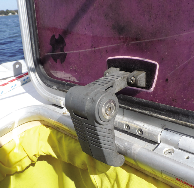 Other latches are essential to the boat’s integrity. Bow anchor lockers, like any locker that is not well sealed, can scoop up a lot of water fast. If a cockpit locker connects with the main cabin (as is the case with many daysailers), the locker is, in effect, another companionway. And like the companionway, if the locker is breached, serious flooding can result.