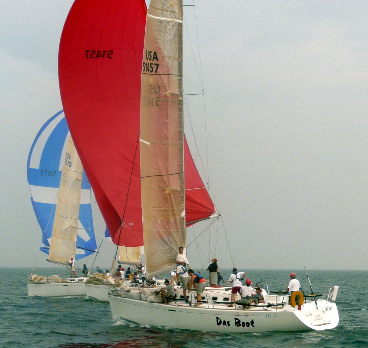 As headsails extend past the mast, they are called genoa. If you have expertise with genoa, you have probably heard them referred to as 110, 120 or 150. These numbers refer to the size of the sail as it relates to the fore triangle. If a jib is a sail that occupies 100 percent of the fore triangle, a sail that is 1.5 times as large as that fore triangle is a 150 genoa. These deep-cut sails are fantastically versatile and are commonly paired with a roller fuller, a setup ubiquitous with cruising, although they are also found on racing vessels alike. The roller fuller makes it easy for a skipper to adjust the sail they have out. Unlike the jib example, when race boats carry three sails and need as many people to douse, flake and re-hoist a new sail, many cruising boats are outfitted with genoas that can easily be furled and deployed as needed when paired with a furling foil. To leave a calm anchorage for a cruise, for example, it’s a calm 6 knots and you deploy your full 150 genoa. As the day progresses and the wind picks up, if you start experiencing lee helm you can reduce that 150 genoa by furling it until the helm returns to a balanced centered tracking position. As the day continues, if the wind falls off simply unfurl the sail and you’re off. I was fortunate enough to spend some time sailing on a friend’s Saber 35 mark II in Chicago with an enormous 180 genoa it was the optimal cruising machine, allowing for easy boat and sail handling while grilling sausages and drinking in the Chicago skyline. These larger genoas offer much more utility than even the 150.