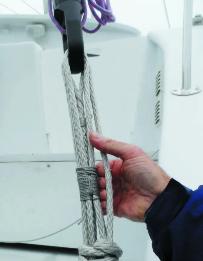 The first image in the article was from a boat that had sailed tens of thousands of miles. The owner vehemently argued that I had employed a trick to take the picture, but in fact, the first pass never tightened. I was not even straining. The tension was applied to the shroud with a separate tackle and the lashing drawn up by hand. This is the usual way, since a lashing is very difficult to draw up tight enough.