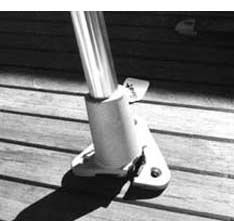 On the plus side is the price. A 30″ stanchion, complete, costs $85. By contrast, a chromed bronze Spartan base ($54.65) and the rodded Tops-In-Quality stanchion ($57.90) together cost $112.55 and you must supply your own backing plate and fasteners.