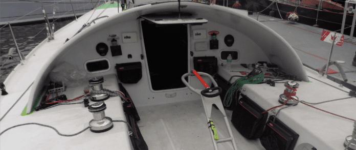 Fiberglass boxes are pretty, smoother, and the lines play out faster, but they are hard to lean against, and the lines dry more slowly, promoting mildew. The open mouths give better access and are nice on multihulls, but the more closed mouth of a canvas bag is more secure when waves roll across the deck or in a knockdown. Canvas bags with closing mouths or zippers are required near the mast and any area on deck that can be washed by waves.