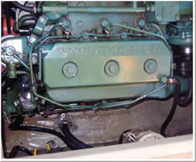 Deck: The deck is constructed of single-unit, hand-laminated fiberglass with balsa core for stiffness, and marine mahogany plywood in lieu of balsa in high-stress areas. The deck should be professionally inspected for signs of water damage or rot.