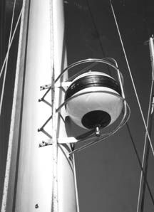 Our mast-mounted Lensref radar reflector has taken a pretty bad beating in the last three years. The culprits have been our spare halyards, which are secured to bails at the base of the mast when we are sailing. No matter how tightly you pull the halyards, they flog against the plastic ball enclosing the Lensref.