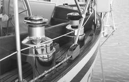 The secondary winches themselves are a bit of history. They are two-speed Barlow 27 self-tailers, dating from the mid-1980s. Stored since that time in plastic bubble wrap, they were in perfect condition 15 years later—NOS (new old stock) in the terminology of the automobile restoration world.