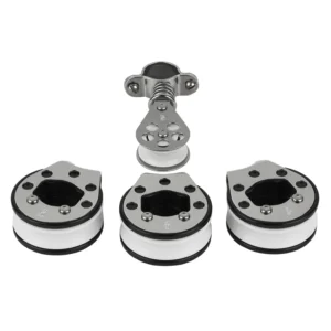 With any fixed stanchion-mount blocks, it’s critical to keep the blocks properly aligned with the line to reduce friction. Changes in the heights of the blocks on the stanchions as you move aft must be gradual, with minimal vertical deflection between blocks.