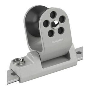The block should also be mounted as low on the stanchion as possible—consistent with the correct line entry angle to the furling drum—to minimize leverage on the stanchion. In extreme cases, it may be necessary to use a deck-mounted high-load turning block for the first point of deflection. Whether deck-mounted or stanchion-mounted, the first lead block must be able to swivel.