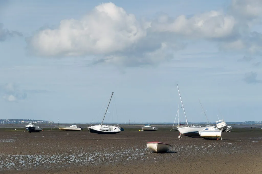 Big Tides. The U.K. and the English Channel has a greater tidal range than most of the U.S. I can anchor in five feet of water in the mid-Chesapeake Bay, secure in the knowledge that unless a strong north wind is coming, there will be 3 ½ feet or more at low tide. In Maine and Scotland the tidal range is 15 to 20 feet or even more, meaning I have to anchor in a minimum of 25 feet at high water and calculate my scope on that basis. In the Chesapeake Bay I seldom need more than 100 feet of rode, so my chain extension is nylon. But in the U.K. or Maine I might routinely need 250 feet or more. With that much rode out, whether chain or rope, polyester is stretchy enough.