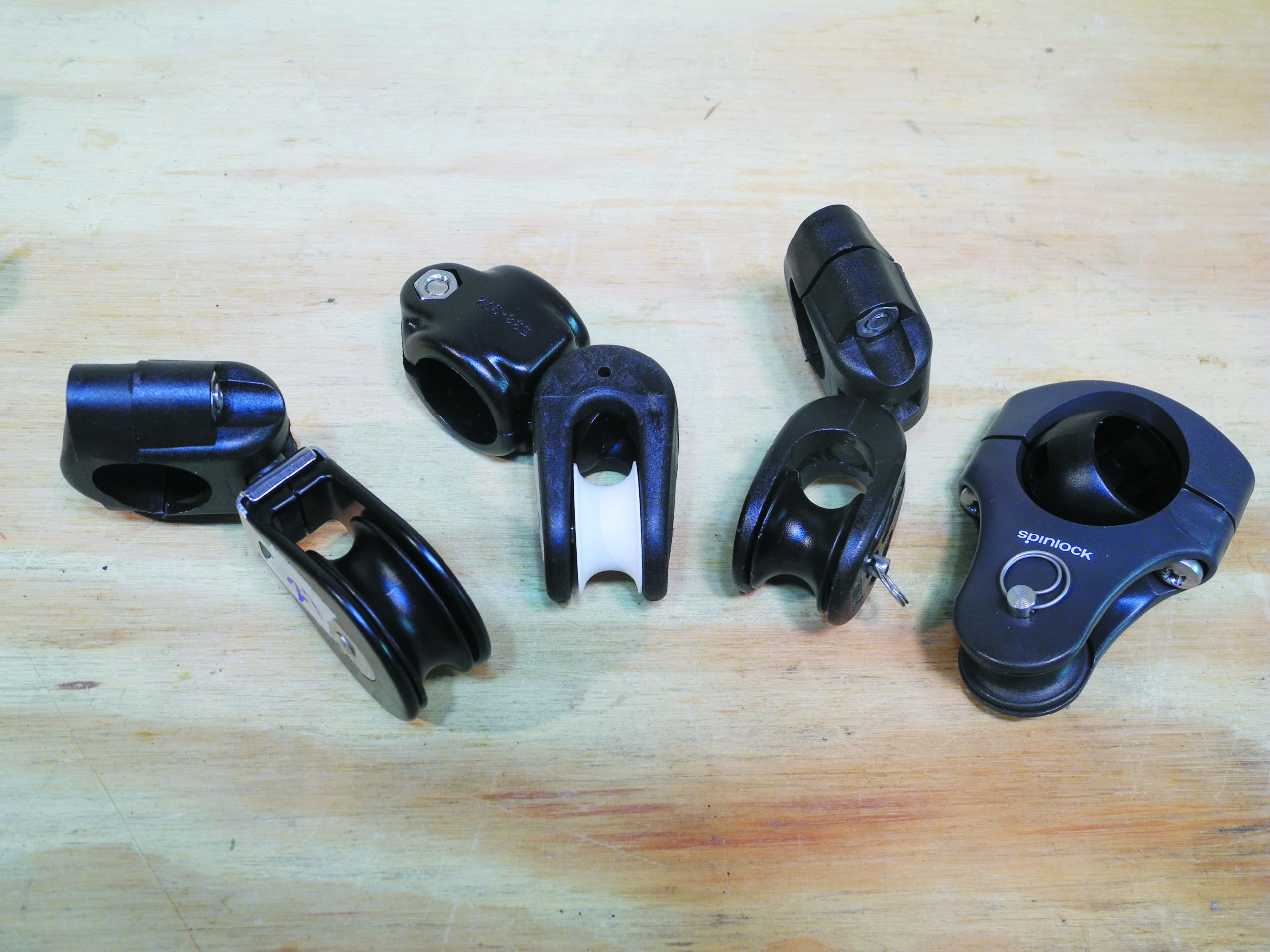 Key attributes we look for in this first lead block are low friction, an ability to pivot in all planes, and an ability to swivel. A ratchet block can also be helpful here to grip the line between tugs and provide some resistance as the wind catches the sail and unfurls it. (See PS May 2009 online for our last test of ratchet blocks.)