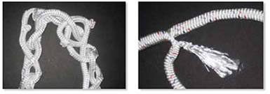Another rope, the new double-braid dock line from NER produced large herniations of the core through the cover every six to 12 inches. Interestingly, none of the older braided lines suffered this type of failure.