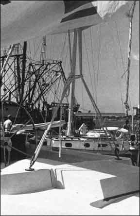 In addition, the mainsheet may chafe on the cockpit coarnings if the traveler car is well to !eeward and the mainsheet eased.