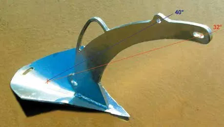 It is the fluke top surface that is important. In previous tests we reported that in thin mud an anchor with a fluke angle of around 45 degrees will outperform an identical anchor with its fluke angle set at 30 degrees. But a firmer sand seabed is entirely different, and research demonstrates the ideal fluke angle for a typical sand bottom is around 30 degrees (see Small Anchor Reset Tests, PS February 2013).