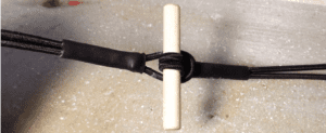 2. The eye should be just large enough to pass the toggle when it is folded flat against the bungee (photo 2). Slide the heat shrink over both seizing’s and shrink with low heat. Alternatively, both eyes can be formed with overhand loops and the heat shrink can be skipped. In this way, you can make several loops extremely quickly from a spool of shock cord.