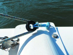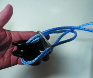 6. We are using a DIY textile block as a reacher turning block. Friction isn’t a problem with polyester line.