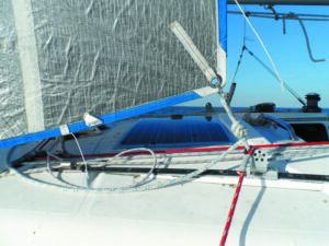 Leading all of the halyards to the cockpit is a convenience, and in many cases a safety improvement, but this involves several 90 degrees turns, so we must minimize friction every chance we get. (We like halyards at the mast too; it’s easier to hoist a heady sail by simply hanging your weight on a halyard than grinding a winch that has been through several turning blocks.)