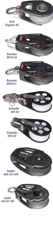 The main bout was among Garhauer, Harken, Holt, Ronstan, Schaefer, and Seldn, and winners and losers could not be distinguished with a simple flick of the finger, spin of the block, or a look at its construction. It took some in- depth testing and inspection to come to our decision.