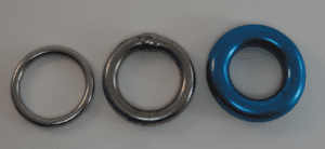They are heavy and quality control is extremely variable. Stick with major brands. We had a no-name ¼-inch x 1 ½-inch ID stainless ring fail at only 5 percent of the listed breaking strength. Crevice corrosion of the weld may have been a factor (aluminum rings are forged, not welded).