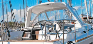 The results vary. When all goes well, the tubular arches and fabric structure complement the lines of the vessel, provide welcome shelter, and still preserve the ability of a crew to handle sails and move in and out of the cockpit safely. In some cases, there’s too much of a good thing, and what emerges is a Conestoga wagon-like countenance that adds way too much windage and excessive vulnerability in a seaway.