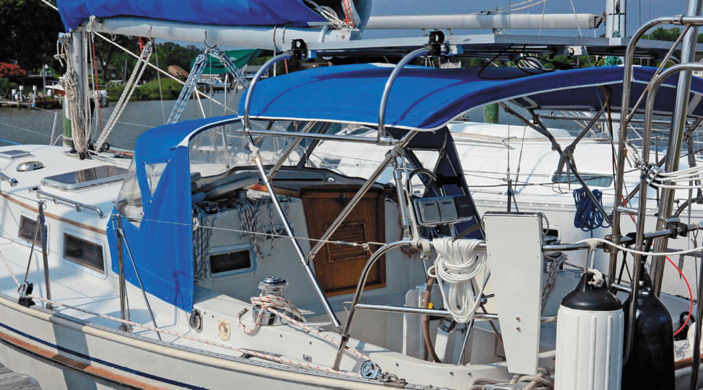 There’s good reason to go sailing under cover. Spray protection and shielding from the sun’s harmful rays lead the list. And it’s no surprise that cruising sailors have created a booming aftermarket industry that keeps canvas lofts and stainless tube fabricators busy. The usual routine involves a canvas loft manager and a boat owner collaborating on what the boat’s designer and builder failed to address.