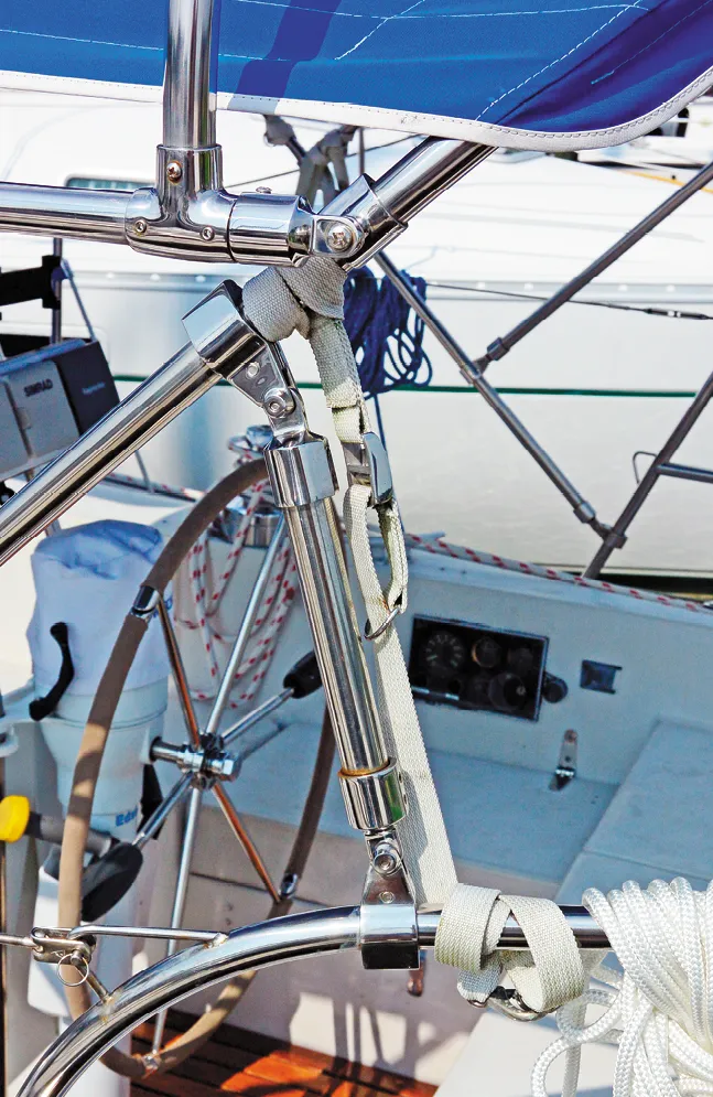 4. Many new cruising boats add fiberglass structures that support dodger canvas. With an autopilot remote control inside the dodger, watch standers have both weather protection, helm control and full visibility