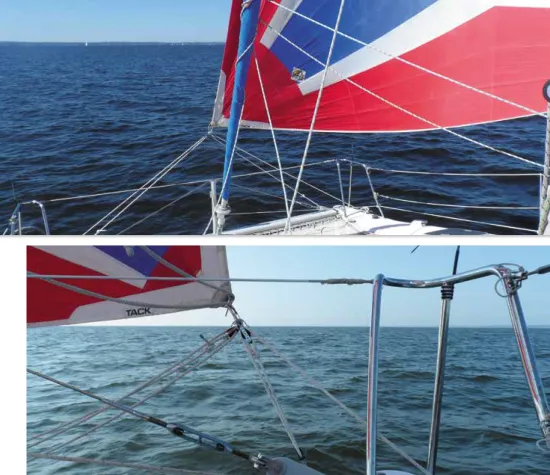 Another reason to have the main up is for balance. With only the genoa up, the boat will develop considerable lee helm, constantly trying to turn away from the wind. This is fine if the apparent wind is aft of the beam, but with the wind farther forward, you will find that you can’t beat, tack, and perhaps not even to turn into the wind, because the wind and waves will overpower the rudders. Poor balance is also hard on the autopilot.
