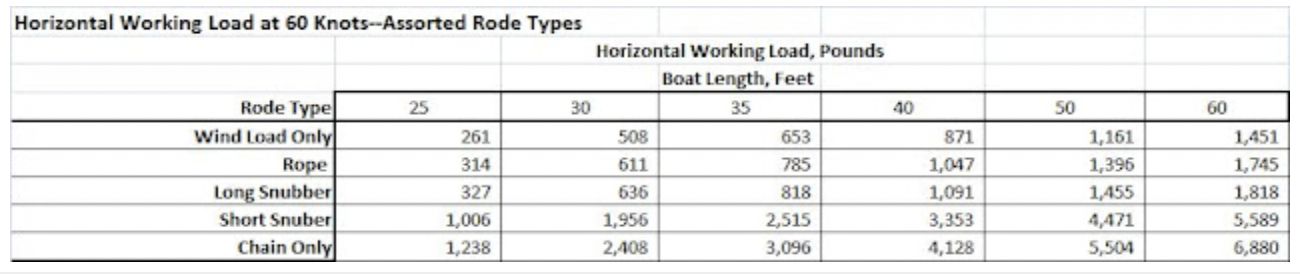 Getting to that single figure isn’t easy. But without it, how can one select an anchor? Or a rode, or whether it should be nylon line or chain? And it’s even more difficult to reconcile this quandary with the customary tables that are intended to help you select an anchor.