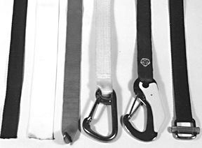 The ends can be fastened with shackles, D-rings, triangles, side-release buckles, sliding bar adjustors or aircraft-type buckles. Lengths can be changed with three-bar slides. There even are fittings that permit the use of a short piece of shock cord on the end of the webbing. It might be handy in low-load applications.