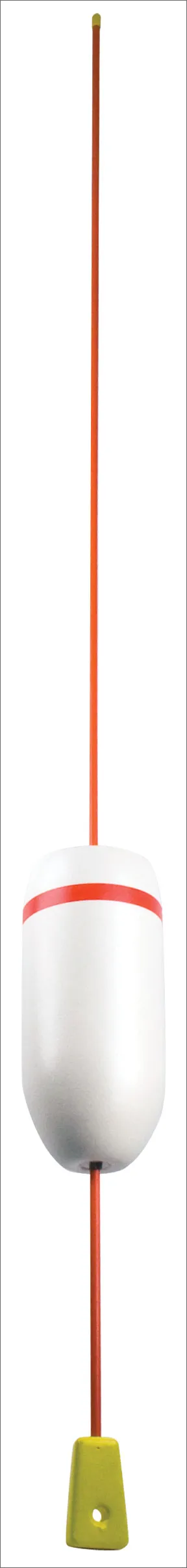 Theres not much to a mast buoy-a long stick, a float, and some lead on the bottom-but Homan adds a few subtle touches that make it much more durable than your average stick. The pole itself is quarter-inch solid fiberglass coated with a thick, bright orange, UV-resistant polypropylene sleeve that adds another 1/8-inch to the sticks diameter. The lead weight is hot-dipped in Plastisolve acrylic, so its totally sealed from the salt water. The buoy is your basic industrial strength 5- by 11-inch lobster buoy. Delrin washers and sleeves and stainless-steel clamps hold the buoy in place. The only thing missing is some SOLAS reflective tape at the top, which is easy enough to add.