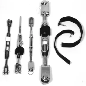Based in East Haddam, CT, the company trademarked the name—”Wrap Pins.” Using high-strength glue, cotter pins are perpendicularly attached to a strip of heavy-duty Velcro. To use, insert the cotters (there’s no need to flare the legs) and wrap the Velcro round-and-round. The Wrap Pins are handiest for turnbuckles secured with pins in each of the threaded segments. But they can be used in other ways on shackles; if it’s something critical, the cotter still should be flared first.