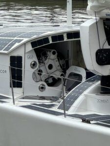 Modern perceptions of a hydrogen future get sort of hung up on a little disaster in Lakehurst, New Jersey 90 years ago called The Hindenberg. Handling hydrogen these days is considered safe, done right, which means plenty of ventilation and robust components. Energy Observer’s eight composite hydrogen tanks are fixed outside the central living pod and vented to the atmosphere. (Hydrogen is lighter than air and won’t settle in your bilge like gasoline fumes.) With alarms, monitors, and good engineering, Energy Observer has lapped the world with hydrogen as its propulsive centerpiece.