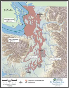 In the absence of an NDZ, untreated sewage may only be discharged more than three miles offshore and not within the inland waters of the United States. Most bays and sounds—the Chesapeake Bay, Delaware Bay, and San Francisco Bay, for example— fall within the three-mile line and are considered inland waters. The Puget Sound is a different case, since it is shared by Canada and is not, thus, an inland water.