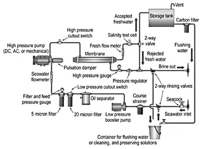On startup, the automatic system monitors output water quality. When TDS drops to an acceptable level, the water is automatically diverted to the water tanks. At shutdown, some automatic systems back-flush the membrane with fresh water. The more sophisticated systems can then be programmed to automatically back-flush the system at regular intervals so that the membrane does not have to be chemically preserved, a sometimes messy and tedious process.