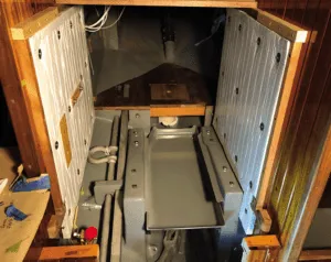 One of the advantages to doing your own work is you can incorporate some very useful modifications. I built a rack/bracket system on the starboard side of the engine beds to hold the stock and shank of the Luke Storm Anchor. I also built a drip catch with a hose barb under the prop shaft stuffing box with a ¼-inch hose to divert any water seepage via the stuffing box to a one-gallon jug in the bilge. My bilge would stay dry without the need for a failure-prone, hard to repair, dripless prop shaft seal. But the most useful modification was a full-length removable drip pan under the engine, which I think every boat should have.