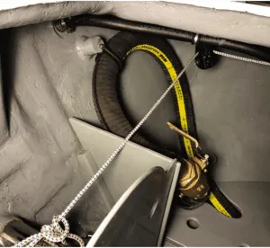 With the muffler installed, I routed very flexible Vetus Slag 50 (2-inch ID) wet exhaust hose through the port locker and into the lazarette. An added challenge was avoiding interference with the control lines of the Cape Horn windvane, which are also routed through the lockers. You can also add anti-siphon vents in the exhaust system to prevent back-siphoning, but I did not want to depend on valves notorious for clogging. Both the exhaust elbow (12-inches above the waterline) and the exhaust hose (36-inches above the waterline) would prevent siphoning but I went one step further.