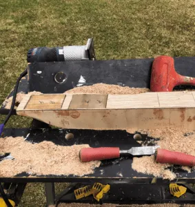 2. After cutting off the top five inches of the rudder, I epoxied that section off to the underside of the hull recreating the original hull profile.