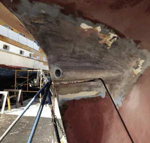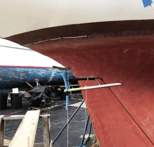 I also did not want to open up the old propeller aperture in the keel/rudder because it would degrade the sailing performance of the boat which was at the heart of the rebuild.