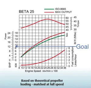 It turned out the Beta Marine US HQ was just down the road in Oriental, NC. So, I visited with them and discussed all this in person with the very professional Farron Peffer, a highly regarded Beta Marine tech rep. He initially recommended a 38 hp to 43 hp (of course!) to achieve maximum performance.