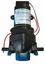 Testers evaluated three Jabsco/ITT products: the Par-Max 2.9, Par-Max 4.3, and the V-Flo 5.0. The 2.9 model, which is suitable for systems with three or more outlets, had the lowest output of the test group—not a big surprise given its lower GPM rating. It was, however, one of the five most quiet and least power-hungry pumps. It also was the least expensive pump tested.