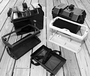 The three tray-type hold-downs we tested were from Gil Marine, T & H Marine, and West Marine. The small battery boxes came from Tempo and West Marine.