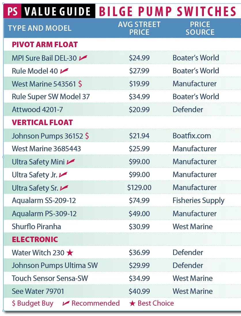“PS Value Guide: Bilge Pump Switches”