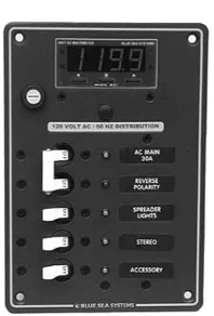 Essentially, a marine electrical panel serves to provide and control electrical power to branch circuits on the boat. An AC electrical panel takes shore power or the output of an onboard generator (genset) and provides it to branch circuits that power AC loads such as refrigerators, air conditioners, heaters, and receptacles for TVs, microwaves, battery chargers and other appliances. A DC panel takes power from the batteries or battery charging circuit and provides it to DC branch circuits that feed loads such as navigation lights, cabin lights, and communications and navigation gear.