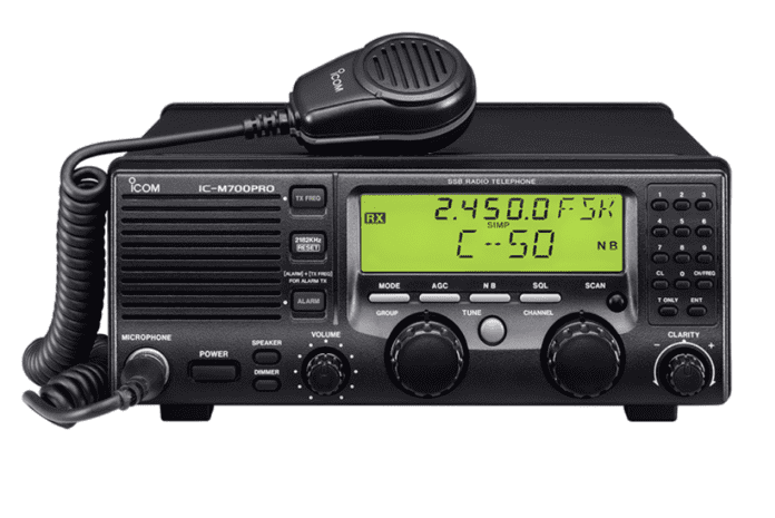 I know this is slightly off topic but thought I’d comment anyway…I had an Icom M710 aboard my sailboat and learned that if through carelessness or rough seas the removable insert fitting of the PTT microphone to the face of the M710 is smashed hard and snapped completely off the M710 it obviously no longer can transmit but surprisingly can no longer receive. Once back in port I ordered 2 microphones; one to the replace the smashed off one another as a spare in case this would ever happen again. I also installed a protective bar in front of the M710 for protection.