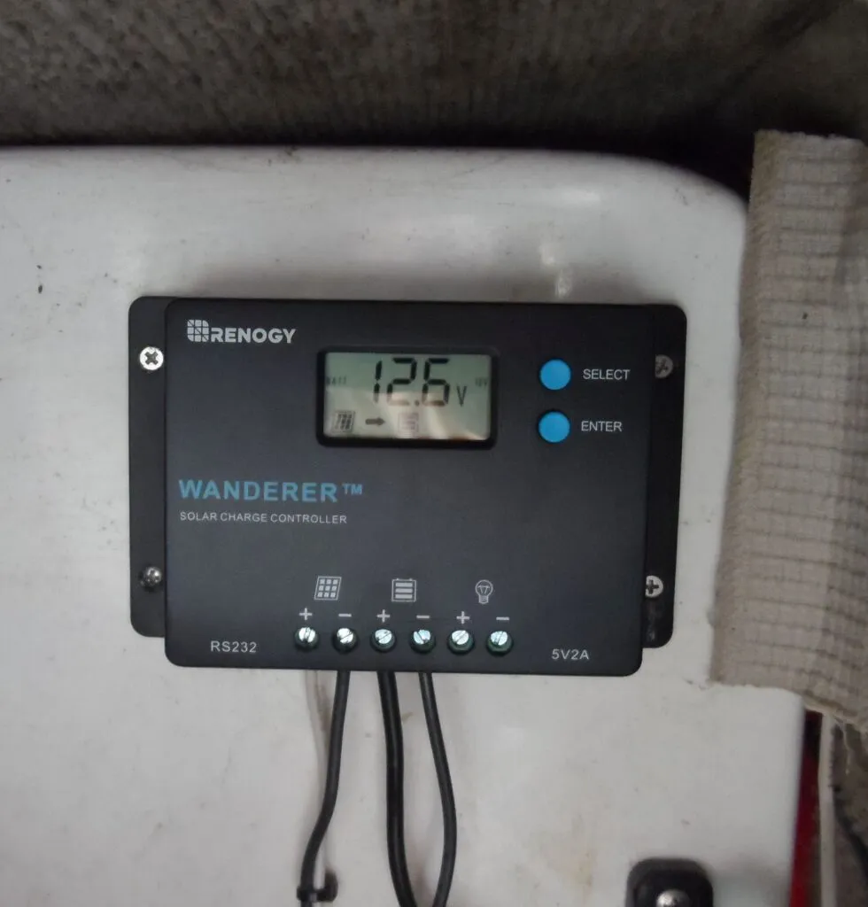 The Renogy Wanderer Li 30A 12V PWM negative ground solar panel charge controller regulator with temp sensor. It works with lithium, sealed, gel, and and even flooded LA batteries. We found it on Amazon for under $30. - Dark Ship. If the BMS trips everything fails. No lights, no GPS, no appliances, and probably no engine (the engine itself may not need electricity, but ancillary equipment does and so motor interlocks typically require a battery connection). On a small boat this is probably a minor problem. You have a flashlight, you have paper charts (do you?), and the outboard is a pull start. If it was over voltage disconnect, wait, follow the instruction, and it should restart. Drain off a little power with lights and figure out why it overcharged. If low voltage, you should be able to restart it in the morning using solar (bypass the charger, since it needs to detect a battery). The problem is mostly avoided by using regulators to prevent overcharging.