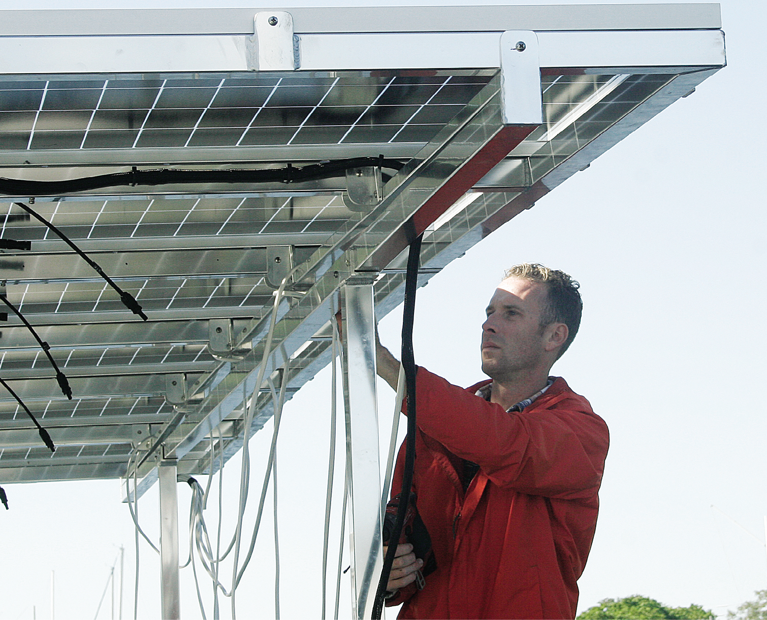 To check your panel, you’ll need a few tools: a multimeter to measure voltage (meters from Gardner Bender and Fluke fared well in our testing, see “Digital Multimeters,” April 2004), a clamp-on DC ammeter (Klein CL120, $55 is an economical choice), a DIY resistance device (a car 12-volt headlamp of known wattage) or an electronic adjustable intelligent resistance tester, sometimes called a constant current tester (MakerHawk has $50 tester rated for 150W-200V-20A; www.makerhawk.com). You’ll also need a thermometer to measure the panel’s surface temperature (the Klein IR1 infrared thermometer works well). These tools will help troubleshoot electrical problems at home and on the boat, making them well worth the initial investment.