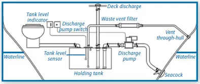 A holding tank vent must be located above the heeled waterline (usually led from a high point in the plumbing). Use commonsense when choosing the location: Place it away from the cockpit and galley ports. (Weve seen vents installed in some creative and troublesome places-like an anchor locker aboard a Tartan 34 and upwind of the cabin on a PDQ32-and nothing ruins an appetite like a holding tank off-gassing!)