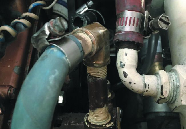 After replacing the raw water pump on his 30-plus-year old Universal diesel, former PS Editor Darrell Nicholson reconnected the tangle of hoses on the cooling system, fired her up and . . . drip, drip, drip. It wasn’t the lip seals on the pump that were causing the leak this time. Nor was it a gasket. Little beads of water were trickling up the new threaded elbow he’d put on the fresh water pump. It had never leaked before.