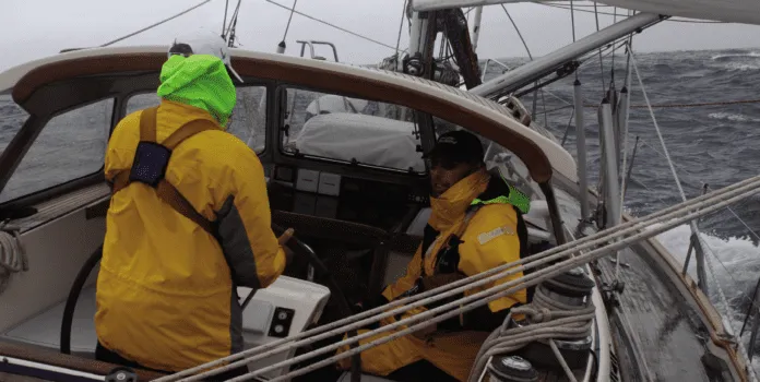 A sailing auxiliary engine should never be fully relied upon to bash into a storm; they are not sized for that. In many boats, the prop will cavitate as it moves up and down, and fuel range is limited. This also holds true for outboard powered sailboats, in which the motor should be regarded as a tool for getting in and out of harbors, getting home on windless afternoons, and at most, transiting canals and rivers.